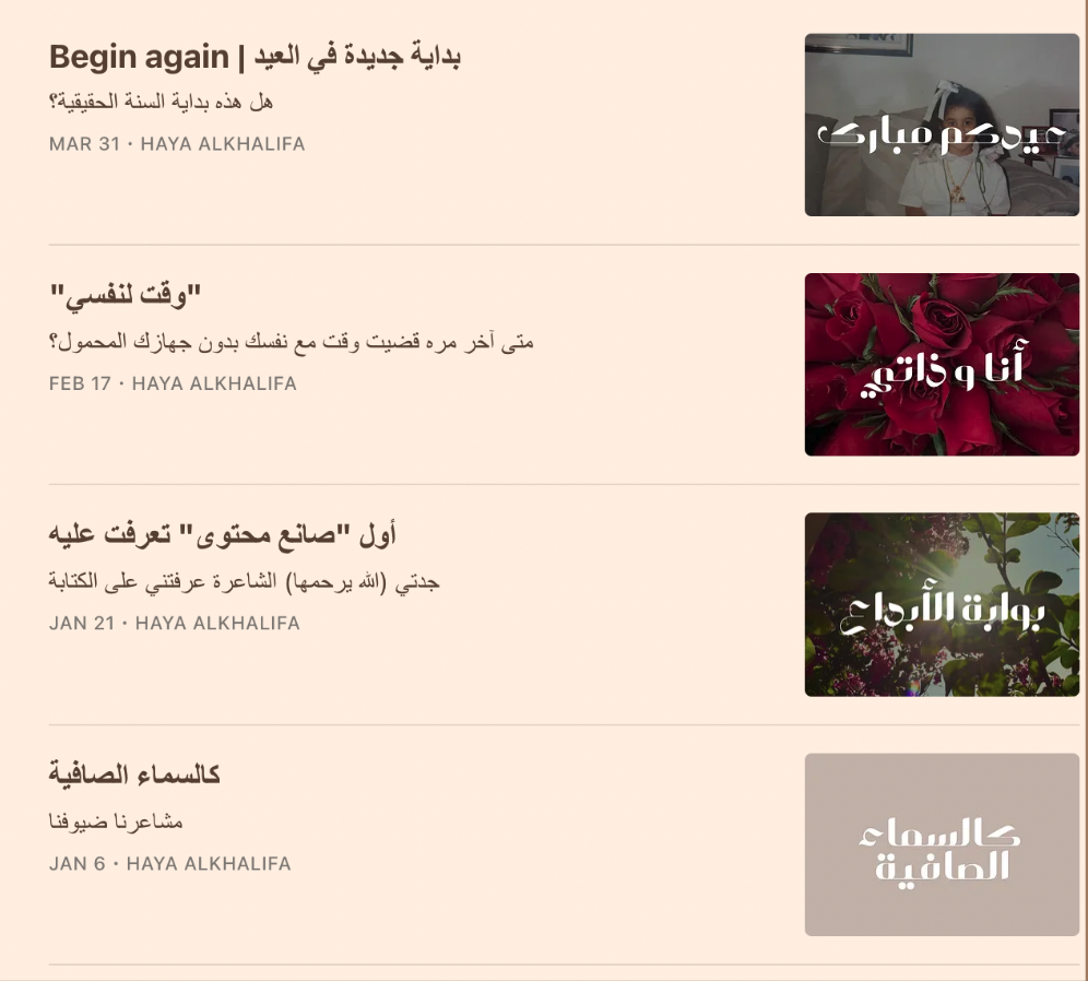 تمتلك مجتمعًا من أكثر من 16,000 مشترك في نشرتها الأسبوعية “تدوينة”، وتُعد من الأصوات المؤثرة في مجال الslow and intentional living، والاستدامة، وتصميم الأعمال بطريقة متوازنة ومتناغمة مع الذات.